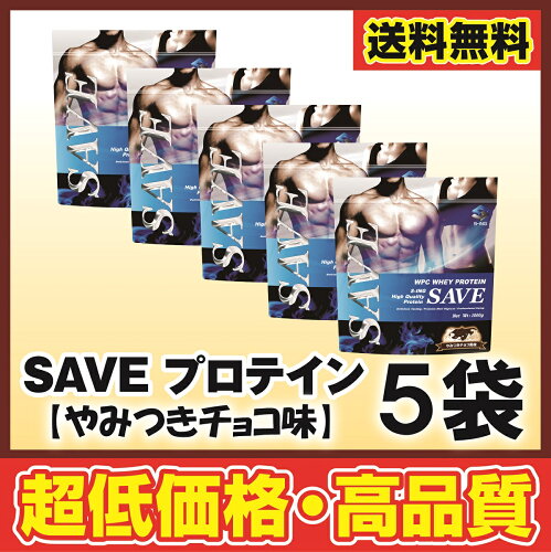 ホエイプロテイン 【送料無料】 【5袋セット】SAVE プロテイン やみつきチョコ風味 1kg×5(5kg) 美味しいWPC 乳酸菌・バイオペリン・エンザミン酵素配合