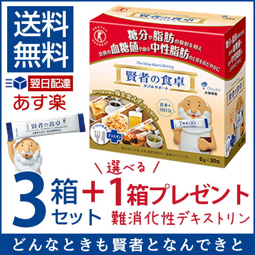 賢者の食卓3箱セットをお買い上げの方に当店オリジナル「なんできコラーゲンα」を1箱プレゼントしています! 脂肪だけでなく糖分の吸収も抑える、史上初のダブル特保。